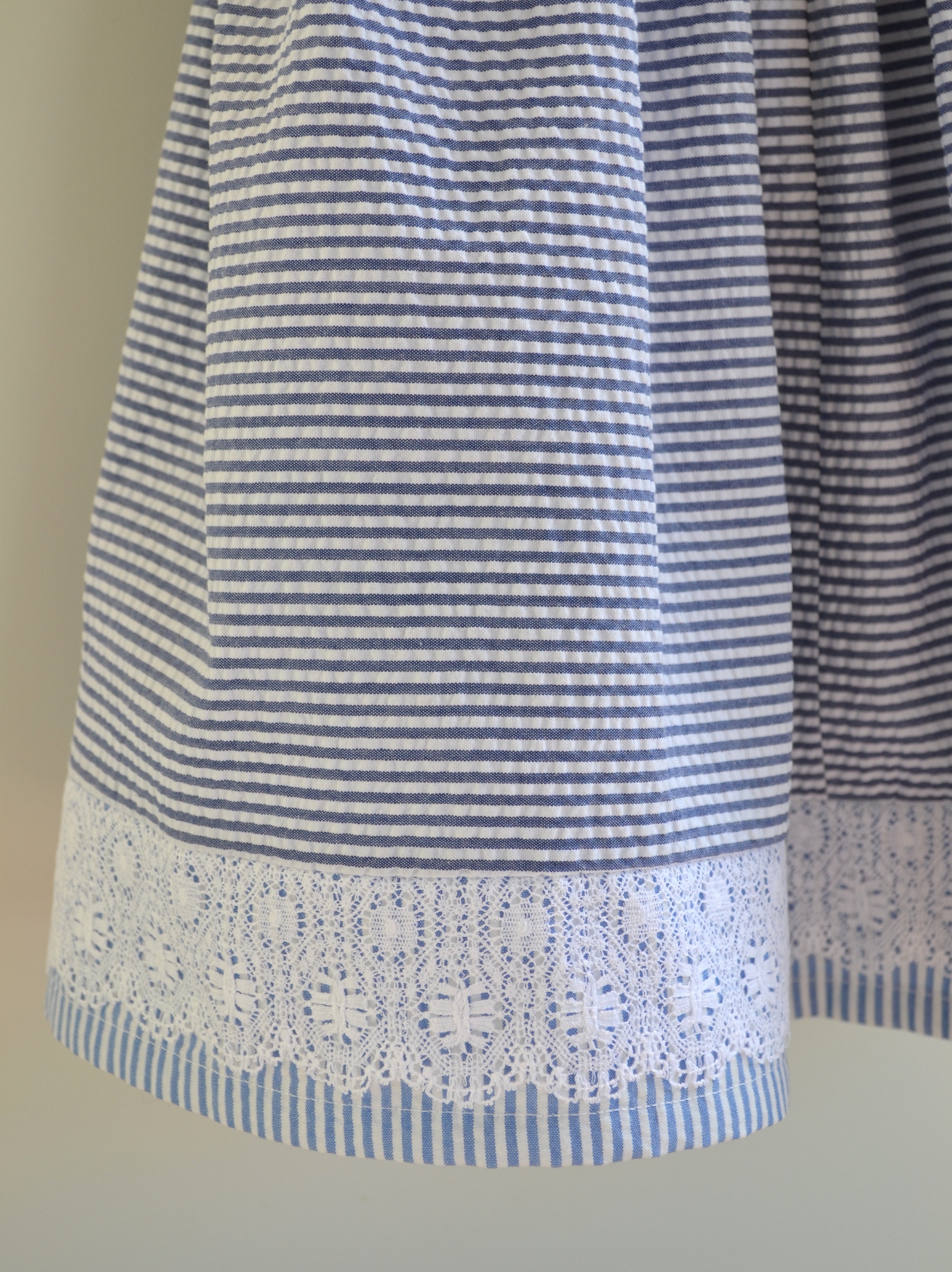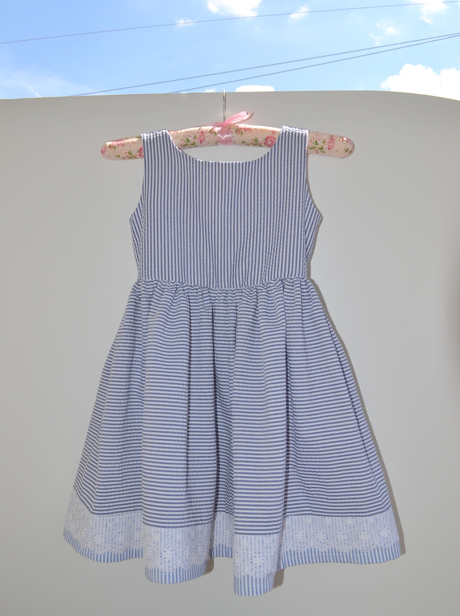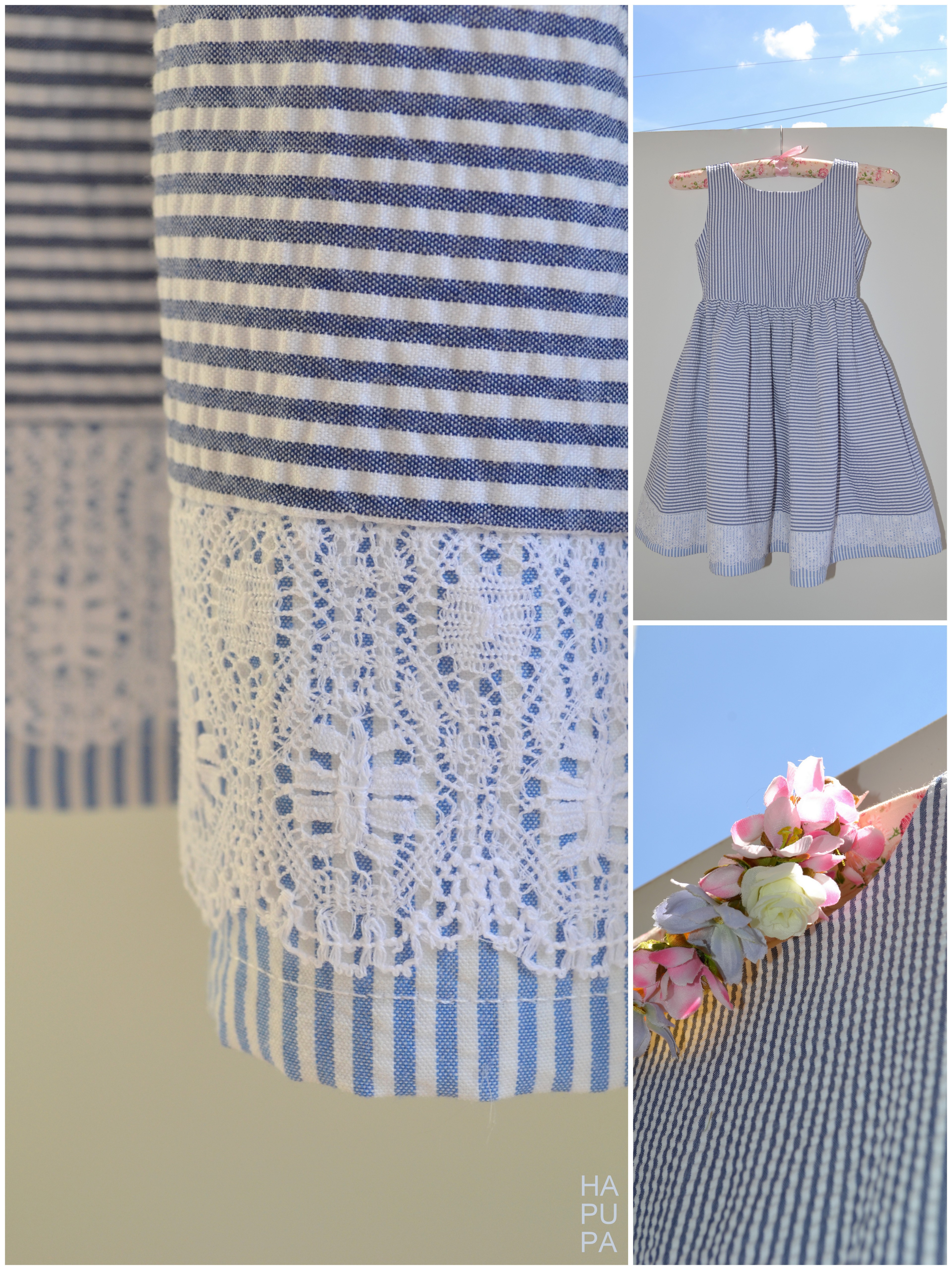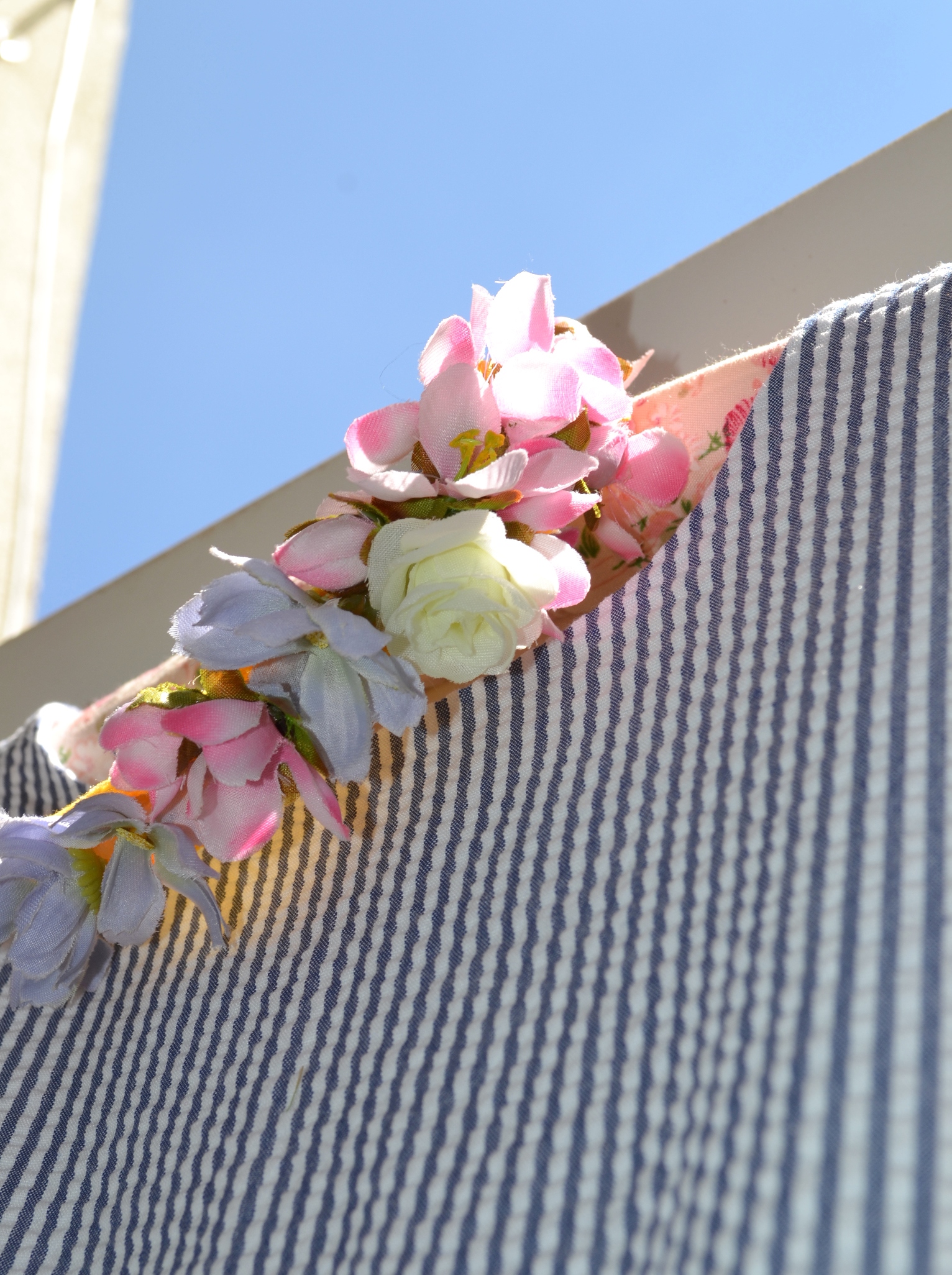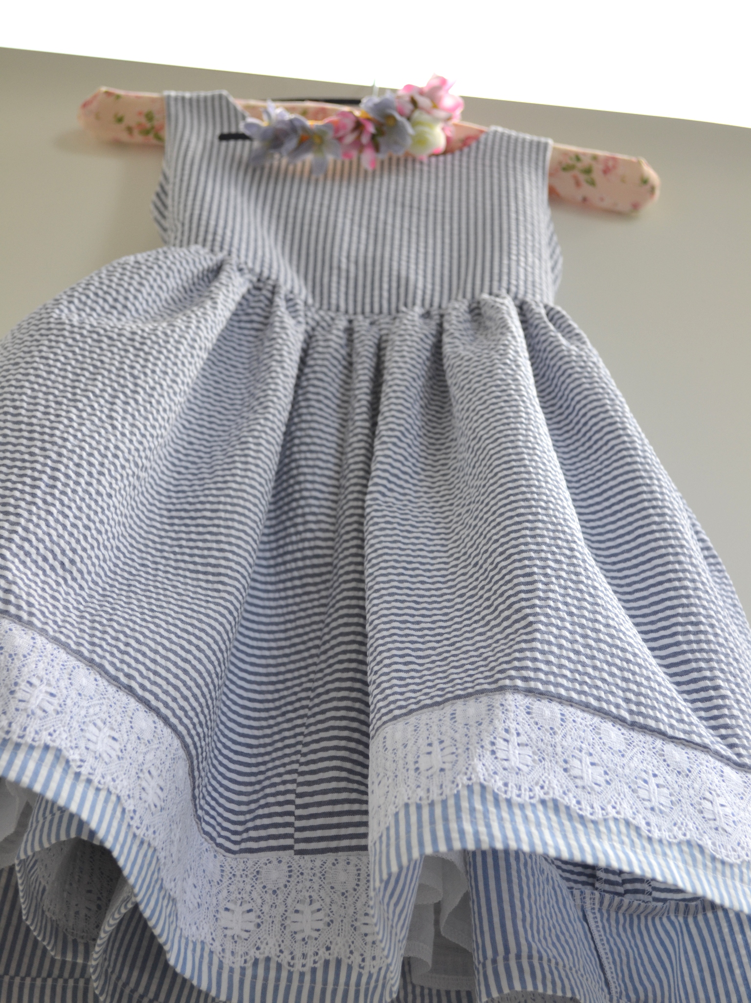 Pro dnešní parný se hodí nějaký ten námořnický modrý proužek. Parádnice už ho má a k němu květinkovou čelenku. I když ještě lepší bude, ať si uplete vlastní z lučních kvítků.